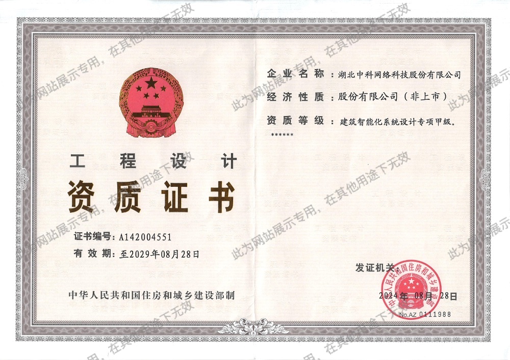 • 國家建筑智能化系統(tǒng)設(shè)計(jì)專項(xiàng)甲級(jí)資質(zhì)